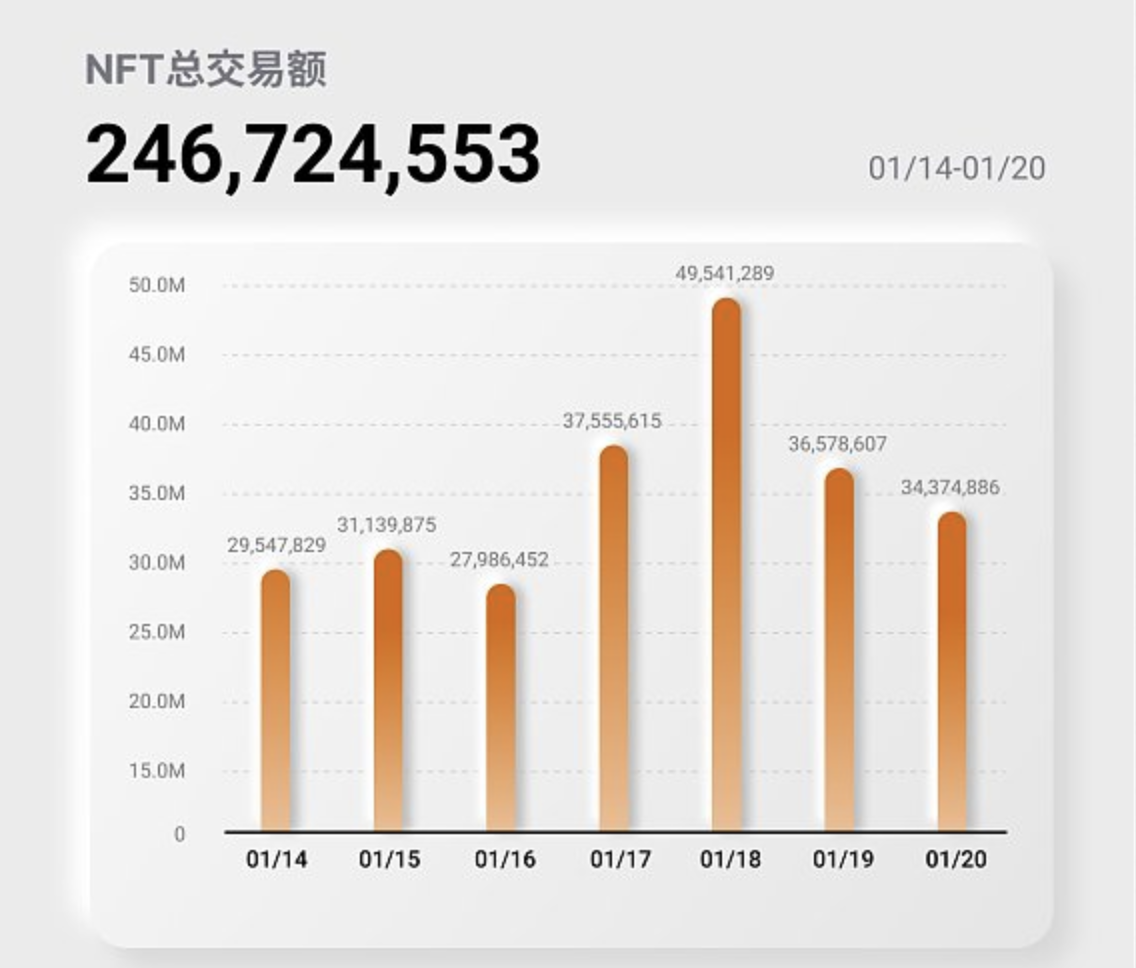 文章来源于互联网:科技讯-NFT行业周报(1.14 – 1.20):交易额达246,724,553美元,用户数超过11万