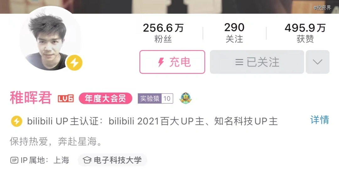 与此同时,作为知名UP主的稚晖君也在B站拥有越来越多粉丝,被称为“野生钢铁侠”。稚晖君在B站上发布了很多自研机器人的视频,点击量都高达上百万,例如3个月自制最小电视、甚至用吃剩下的螃蟹壳打造了一台可无线控制、可目标追踪、可激光测距的火星车……如今,稚晖君在B站拥有超过250万粉丝。