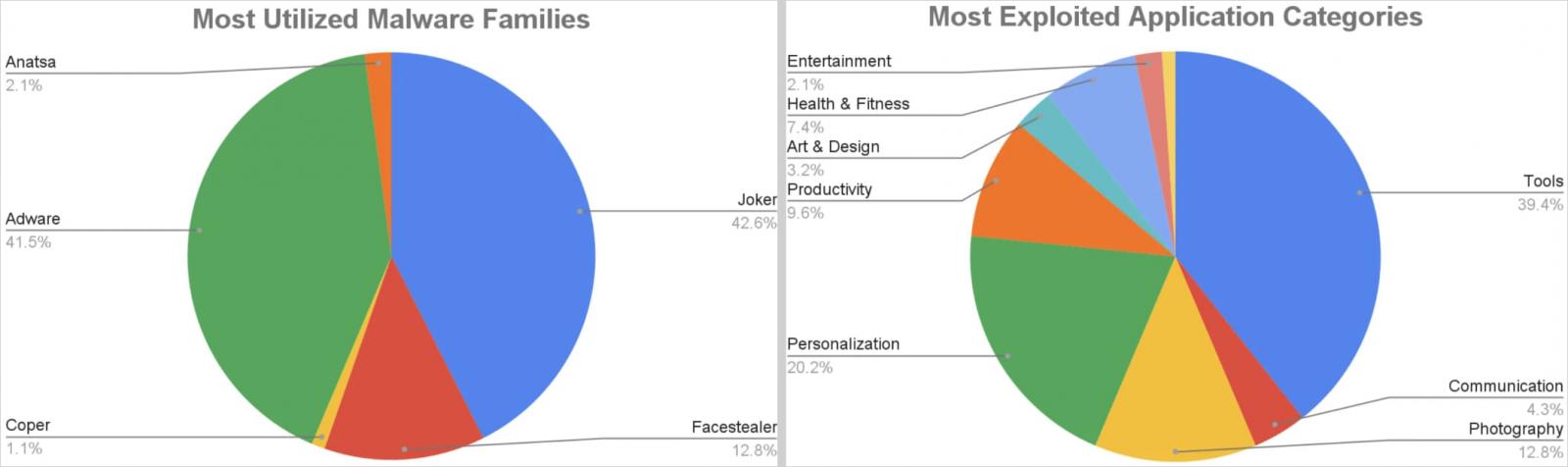 大多数恶意应用程序模仿工具、个性化应用程序、摄影实用程序、生产力以及健康和健身应用程序。