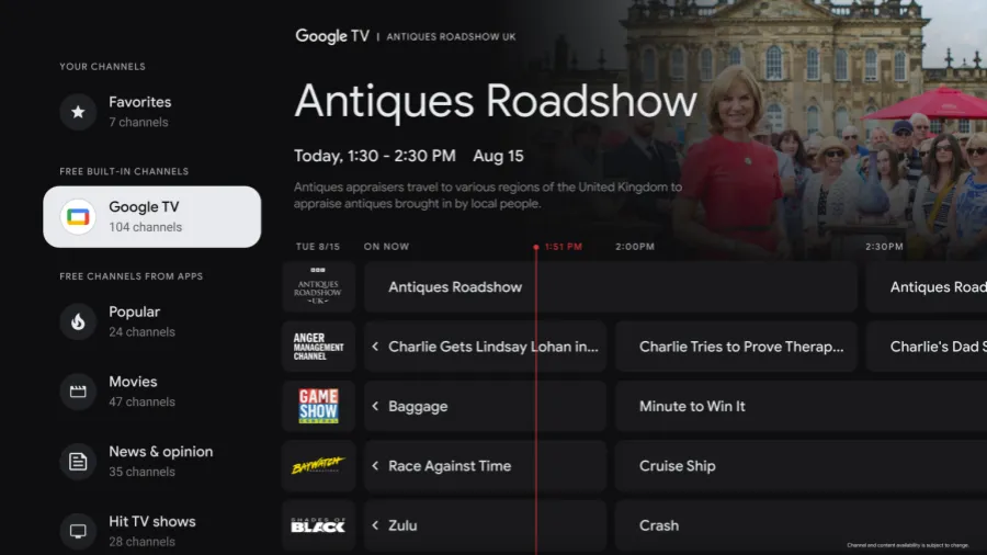 Google谷歌表示,经过这些添加,目前 800 个免费频道中已有 100 多个免费内置频道。