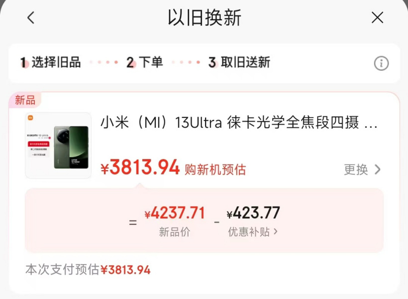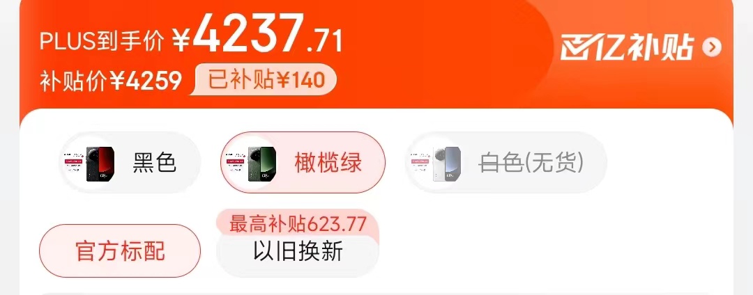 * 深圳地区可用,其他地区小伙伴需自测,商品主页以旧换新显示【至高补贴 623.77 元】即为支持该活动: