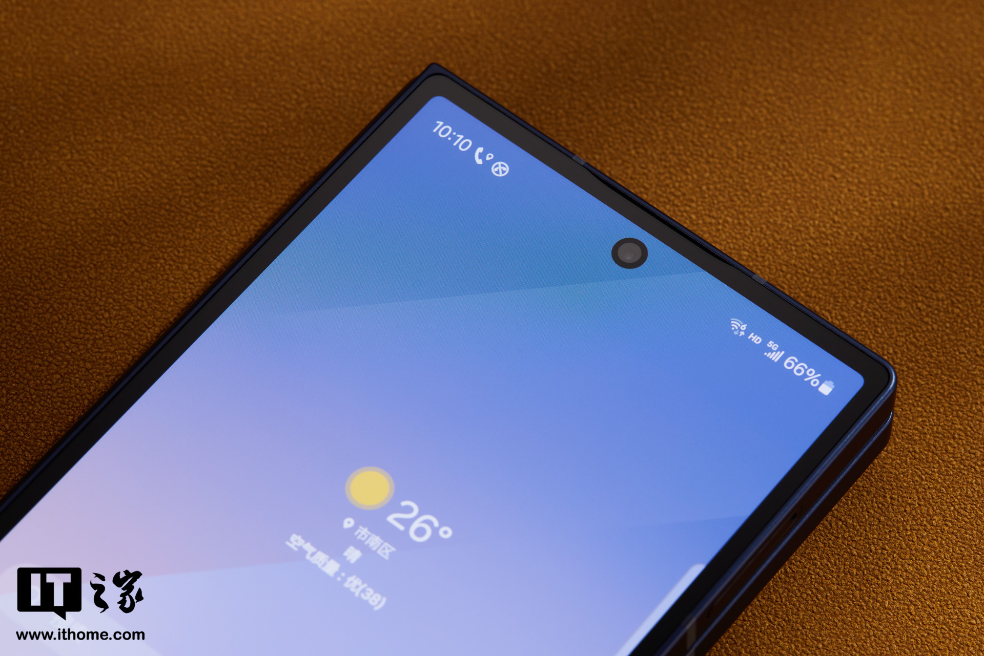 设计上,三星 Galaxy Z Fold6 拥有比上一代稍宽的外屏,长宽比从 Fold 5 的 23.1:9 改为 22.1:9,折叠后使用手感更接近直板手机。