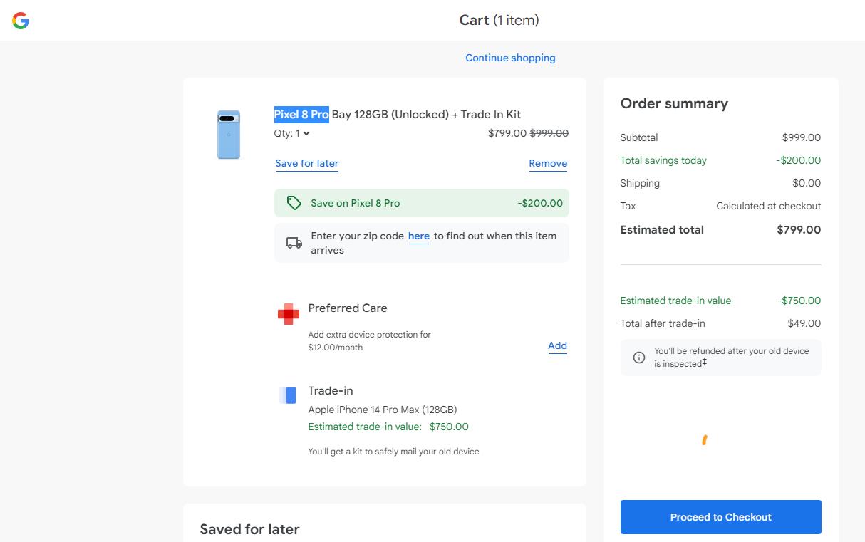 你没有看错,就是49美元!现在美国用户前往Google Store按照以下的方法,便可只花费49美元就能获得一款全新的Google Pixel 8 Pro。