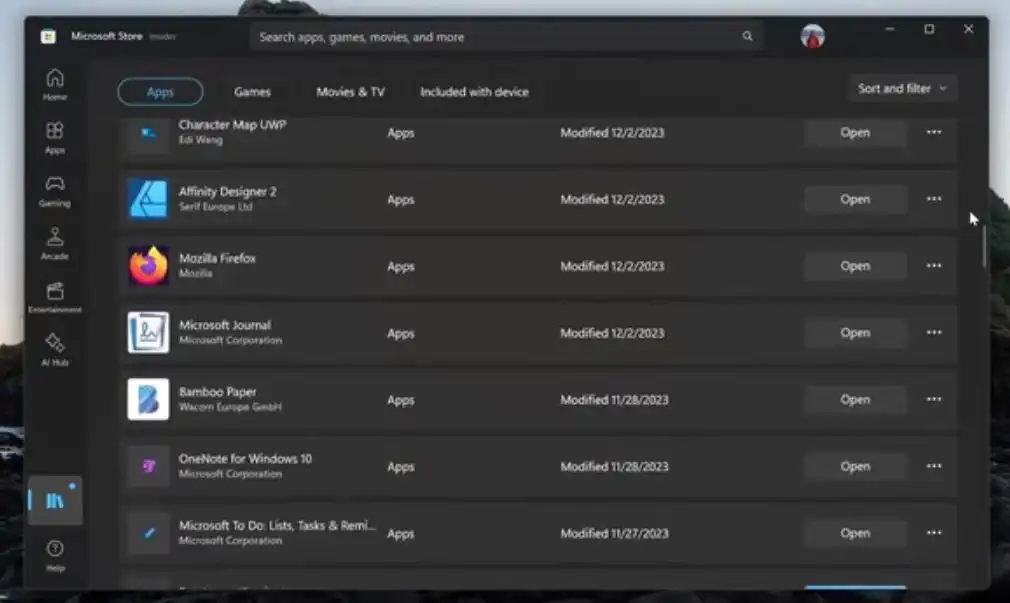 在应用库中,用户可能会遇到只显示近期安装应用或更新的问题,这给用户带来了不小的困扰。但是,通过Microsoft Store 22311更新,这个问题得到了有效的解决。用户在安装本次更新之后,应用库可以正常显示当前设备上已经安装的所有应用,解决了之前只显示近期安装应用或更新的问题。