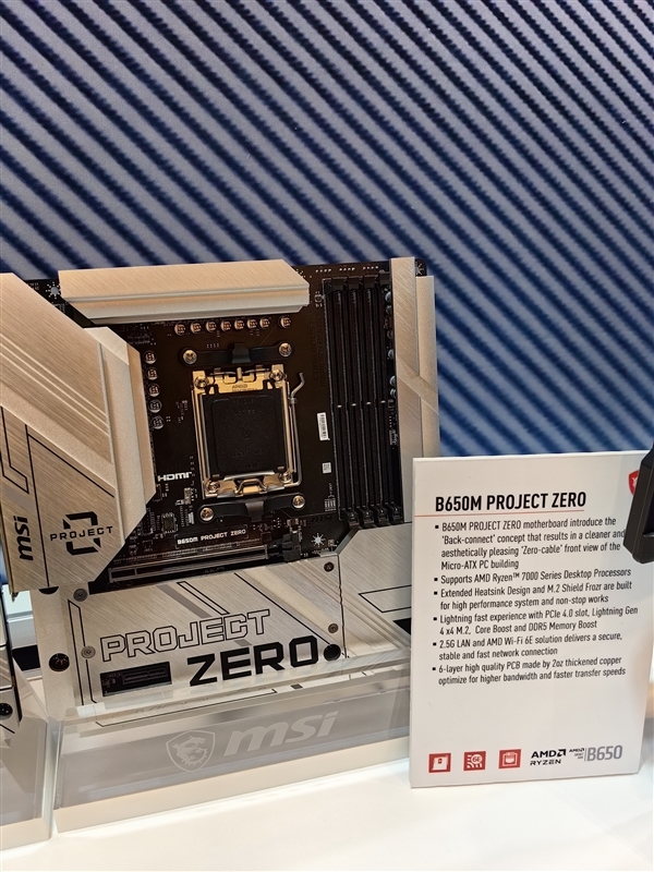 微星还为DIY玩家推出了PROJECT ZERO系列推出全新背插主板与机箱,这个系列的主板采用了背插设计,供电、风扇以及SATA等连接插槽都设计到主板后方,机箱也是采用独特的开孔与理线通道,可以避免线材杂乱而影响视觉效果。