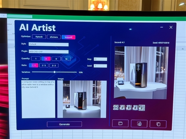 值得一提的是,微星推出了一款AIGC软件——AI ARTIST。这款出色的工具能支持以文字产生图片、图片产生图片的任务,让使用者能够轻松使用AI 技术生成理想的图像。更方便的是,AI ARTIST还能够提供所产出图素的Adobe Photoshop档案,让使用者可以针对图面进行更细致的调整,释放无限的创造力。