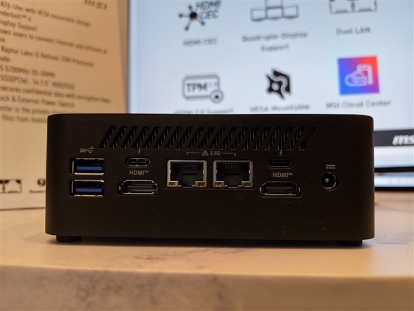 新款MINI主机有两个Thunderbolt 4连接埠,其中一个支援电力输入功能(PD input),只需一根与显示器连接的线材即可为Cubi 6供电。使用者还可以从支援HDMI-CEC功能的显示器电源键来启动Cubi 6。为了提高使用者工作效率,四显示器显示设定更是完全没有问题。