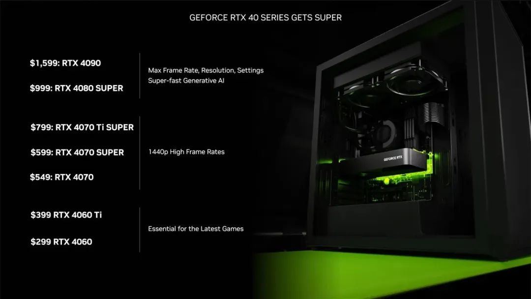 这次推出的三张 40 系 Super 卡,进一步细分了原有的显卡产品线,也算是给今年即将到来的 50 系打了前战。