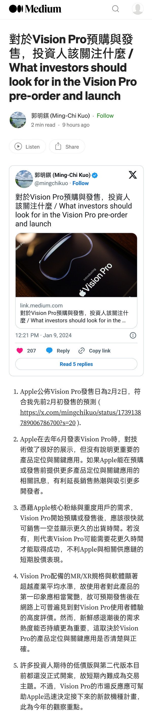 郭明錤发文