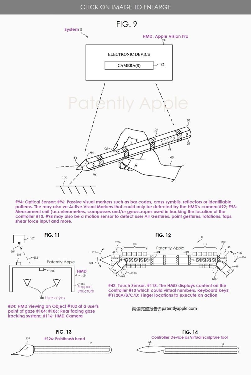 文章来源于互联网:凤凰网-苹果笔状控制器专利曝光:能拆分,配合Vision Pro头显等设备使用
