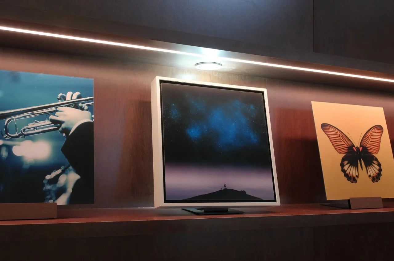 三星 The Music Frame 的外观就是一个艺术相框,用户可以塞入照片或者画作,可以装饰到墙壁上,以达到美观的目的。
