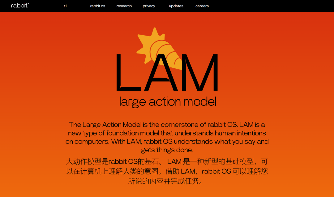 > rabbit OS 是第一个建立在 Large Action Model(LAM)上的操作系统,该模型将学习用户使用特定应用的意图和行为,然后模仿和执行。
