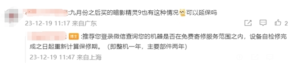 有用户询问:“九月份之后买的暗影精灵9也有这种情况,可以延保吗”。对此,惠普回应称:“推荐您登录微信查询您的机器是否在免费寄修服务范围之内,设备自检修完成之日起重新计算保修期。(即整机一年,主要部件两年)”