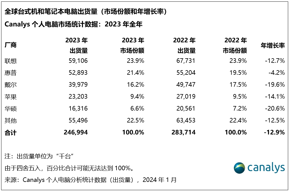 文章来源于互联网:凤凰网-机构:2023年全球PC出货2.47亿台,Q4结束同比下滑