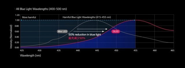 【OLED相比其他显示技术释放的有害蓝光减少50%】