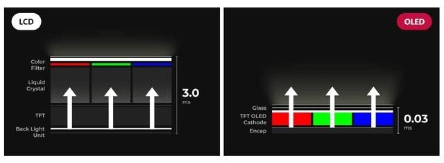 是什么支撑了OLED在游戏电竞场景下碾压级别的表现呢?OLED自发光技术中“100%实时像素控光”特征至关重要。