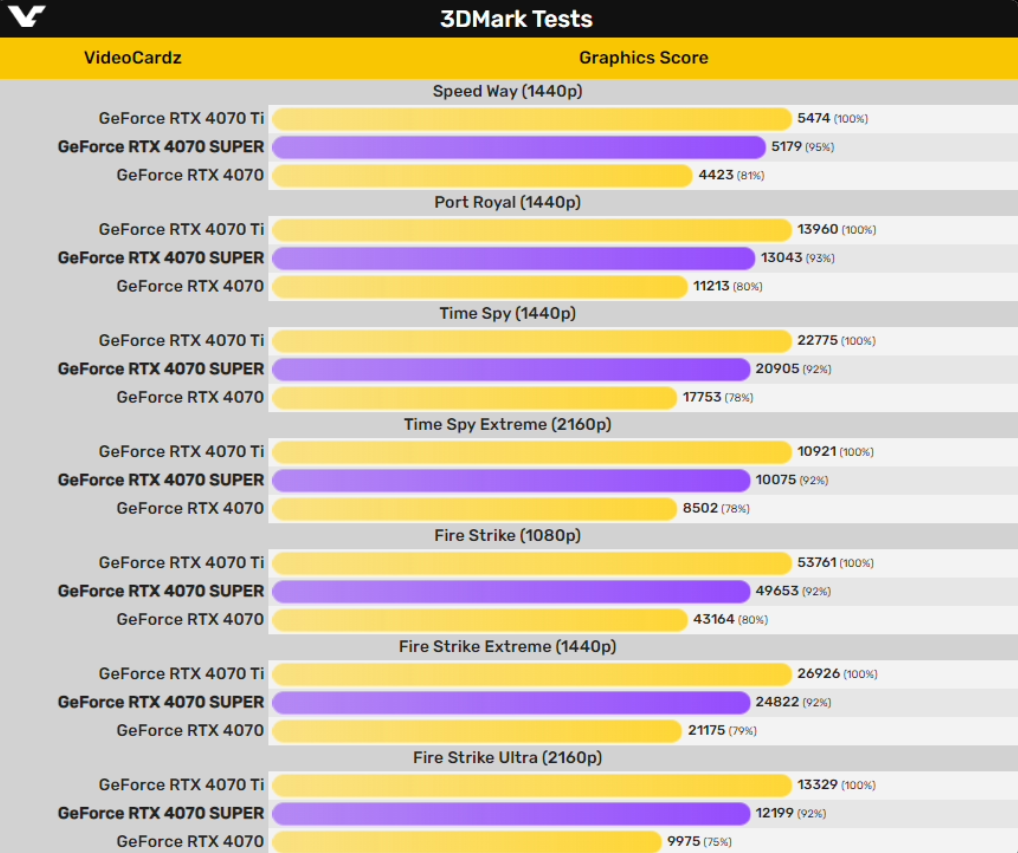 据外媒报道,近日网上曝光了英伟达RTX 4070 Super 显卡的3DMark跑分,相比RTX 4070性能提升了大约18%。