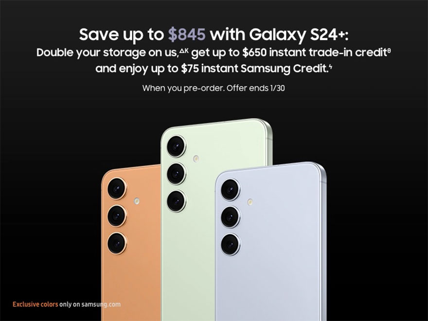 文章来源于互联网:科技讯-美国Samsung Store推出以旧换新活动:购买Galaxy S24 256GB的并且持有Galaxy Z Fold5的用户可享最高659.10美元优惠!