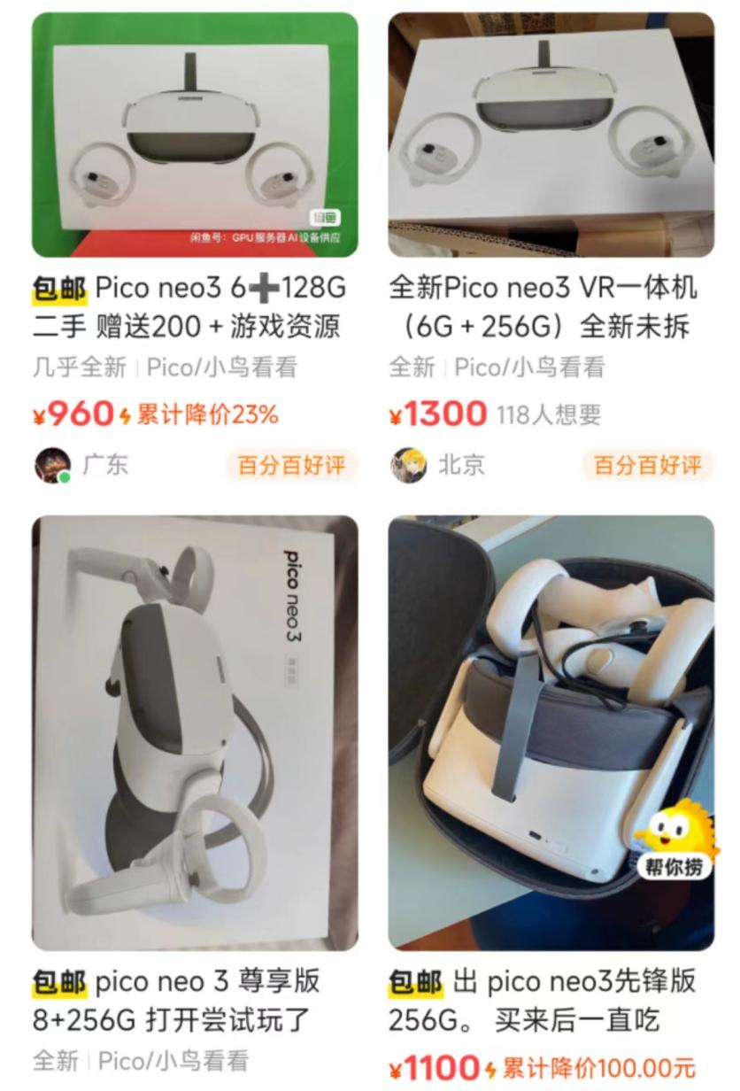 如果只是为了尝鲜,那么二手平台上已经跌破1000元的PICO入门款NEO3就能满足绝大多数小白用户的需求,而想要体验更进一步,Meta Quest3也只需要大概两台山寨款的价格就能拿下,如果和这些知名品牌同台竞技,山寨货几乎没有胜算。