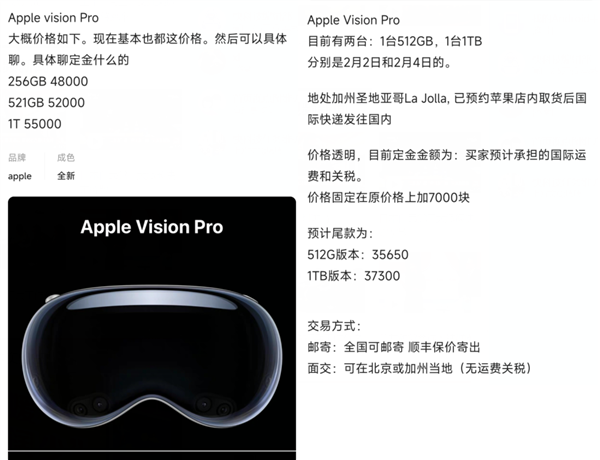 各种因素导致苹果Vision Pro的代购价格高涨,国内第三方平台显示,海外代购价格在7000元以上,普遍加价上万元。