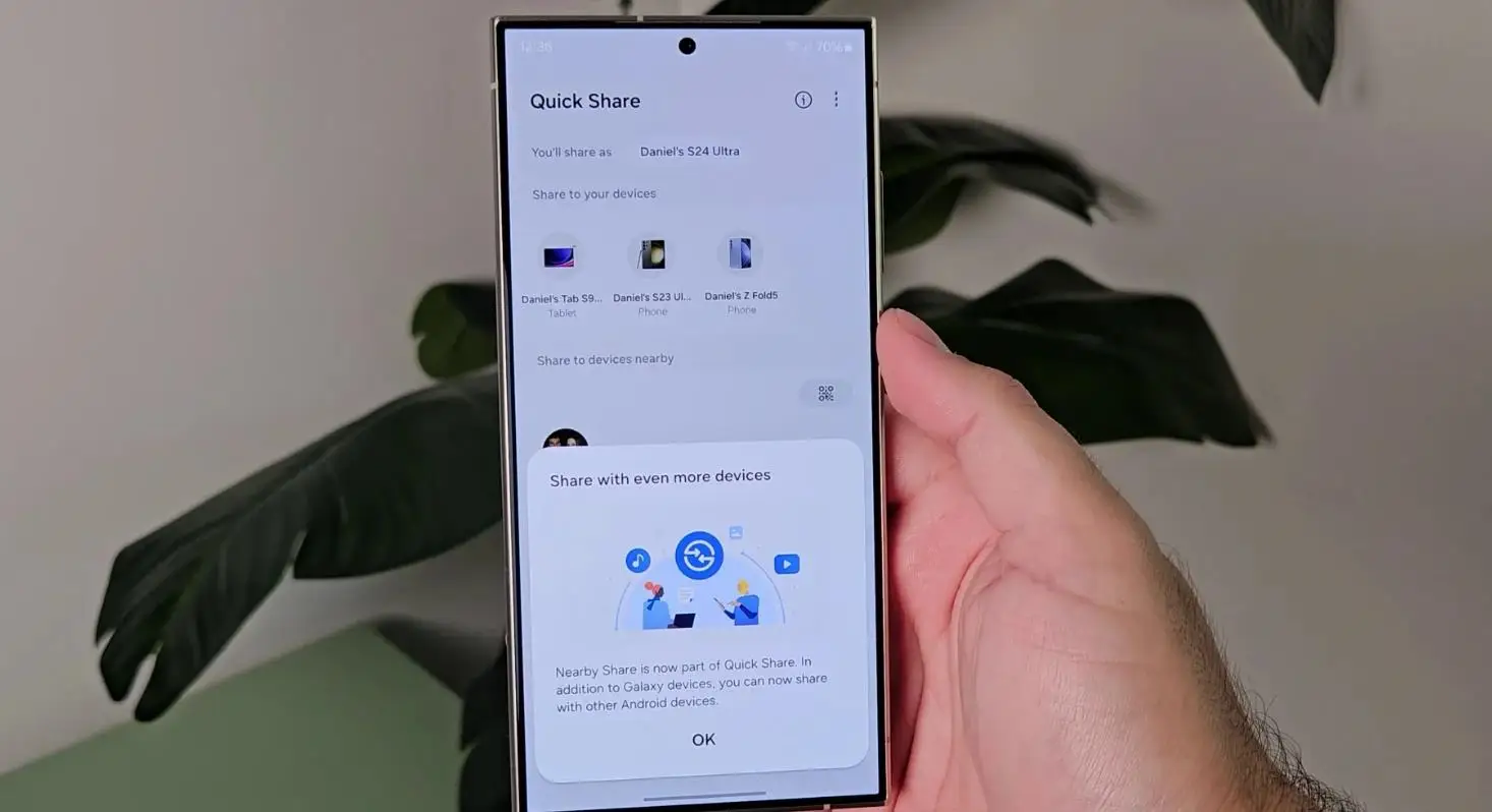Galaxy S24系列是三星智能手机系列中首款采用新的Quick Share功能的手机。这一功能与谷歌的Nearby Share整合,使得用户在分享文件时更加方便快捷。由于快速共享和附近共享的合并,Android用户不再需要在两个功能之间混淆。现在,快速分享已成为一个快速且高效的单一系统。