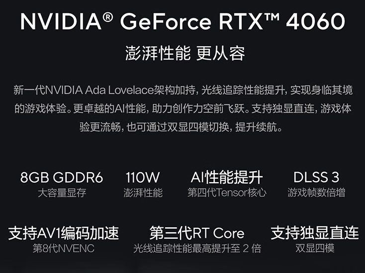 IT之家注意到,这款笔记本配备 16 核心 22 线程酷睿 Ultra 9-185H 芯片,性能释放 65W;并配有 110W 英伟达 RTX 4060 显卡,支持独显直连。