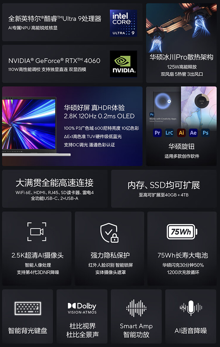 文章来源于互联网:凤凰网-华硕2024款无畏Pro 15笔记本开售:Ultra 9+2.8K OLED+RTX 4060,首发价格8499元