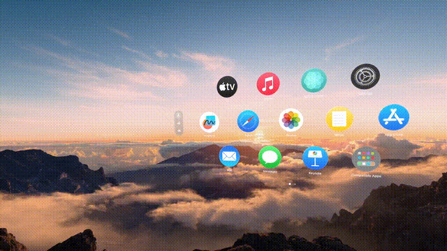 当佩戴者打开Vision Pro的主页视图时,就能发现上面有各种可供使用的APP,可以通过盯着某个图标,然后再捏合双指即可来选中。