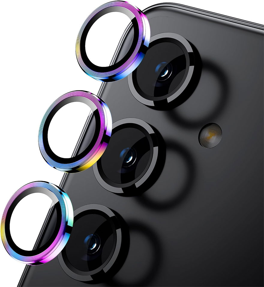 WSKEN的三星Galaxy S24相机镜头保护膜是一款专为保护相机镜头而设计的配件。这款保护膜采用9H钢化玻璃和铝合金金属材质,具备高强度的防刮性能和优异的透光率,能够为相机镜头提供充分的保护,同时保持像原装相机一样清晰的照片。