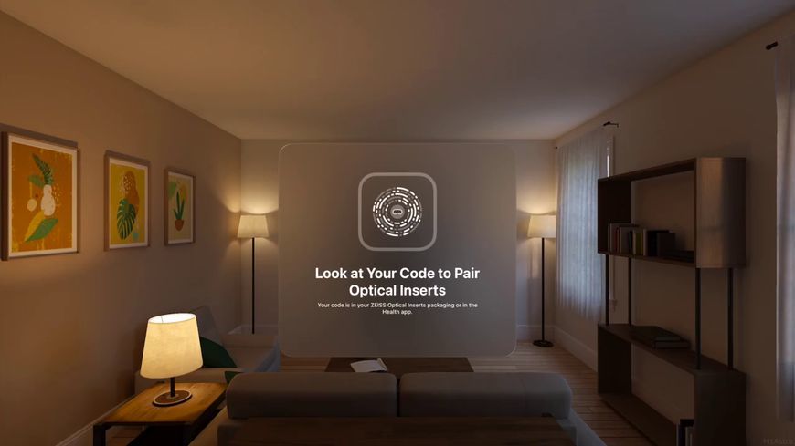 接下来 Vision Pro 头显会要求用户检查和输入镜片包装中 ZEISS Optical Inserts 配对码,用户也可以打开 Health 应用找到。该配对码与 App Clip 代码非常相似,且在安装新镜片后似乎无法跳过配对过程。