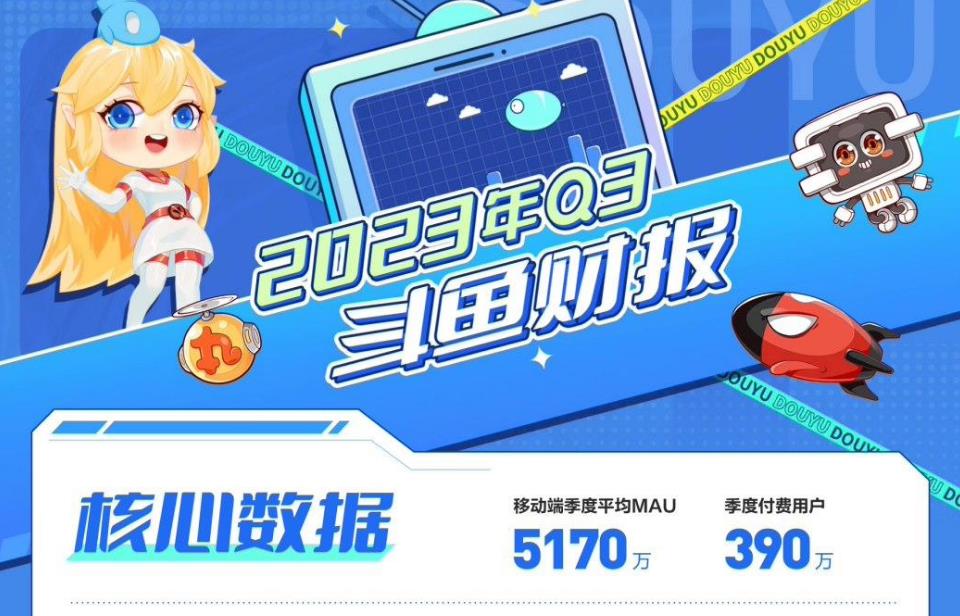 第三季度,斗鱼移动端平均 MAU 环比增长至 5170 万,付费用户为 390 万。斗鱼在本季度共计转播了 2023 英雄联盟 LPL 夏季赛、2023 王者荣耀 KPL 夏季赛、2023 和平精英 PEL 夏季赛、Dota 2 Bali Major 和利雅得大师赛、新游无畏契约的全球冠军赛等 52 场大型官方赛事。
