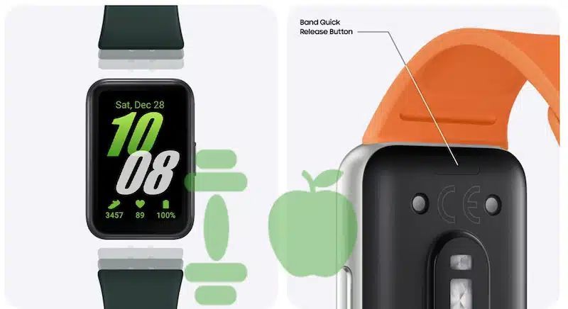 表带有深绿色和橙色两种表带颜色,这些表带由柔韧橡胶制成,在保证舒适的同时又不失时尚。