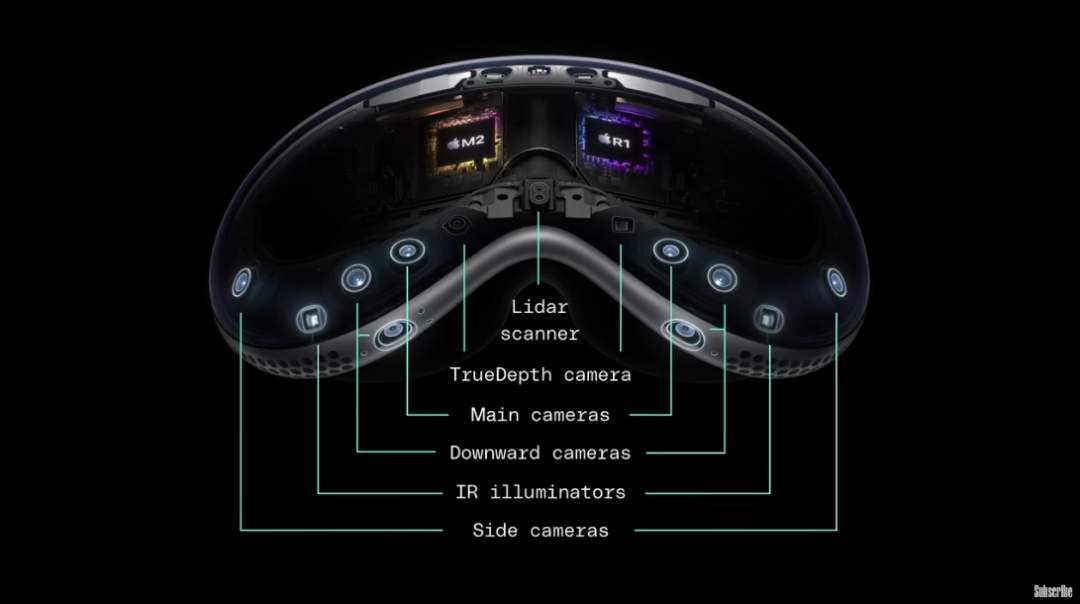 但是 Vision Pro 几乎可以骗过你的眼睛,最大程度地还原现实,这得益于 Vision Pro 丰富的感知元件。