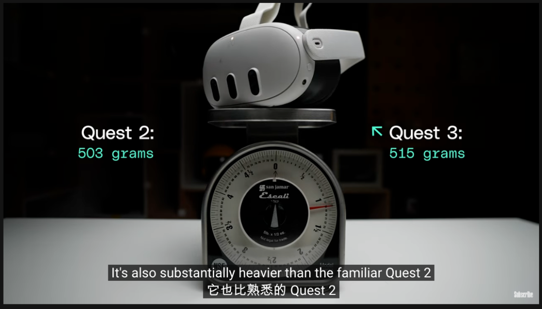 仅设备的重量就达到了 600~650 克,加上头带和遮光垫的重量,几乎可以赶上 12.9 英寸的 iPad Pro(682 克),虽然其他品牌的头显会更重(如 722 克的 Quest Pro),但一体式的设计,电池反而成了平衡设备配重的部分,分体式的 Vision Pro 看似解决了电池的重量,但整机重心前移,又让苹果头显不那么适合长时间佩戴。