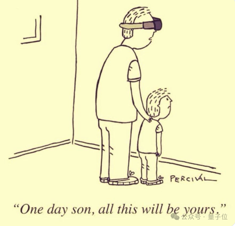 戴着Vision Pro的老爸拍拍孩子肩膀,说道:“孩子,总有一天,这一切都会是你的!”