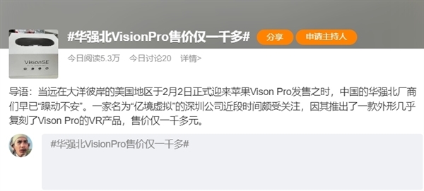 据国内媒体报道,近日,深圳一公司推出了一款名为Vison SE的VR产品,起外形几乎复刻了Vision Pro,售价只要一千多元。