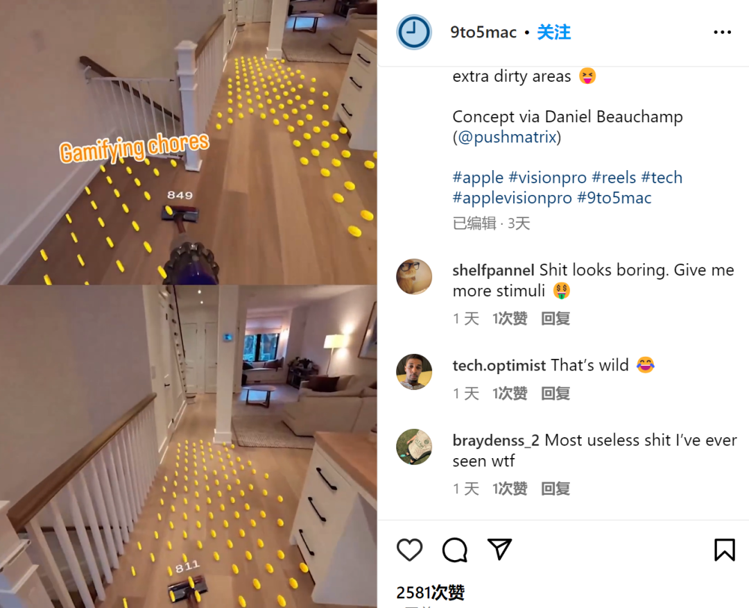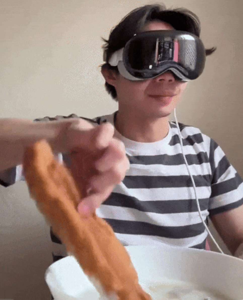 除了戴上它上街体验,广大用户也纷纷开始尝试Vision Pro的各类“玩儿法”。