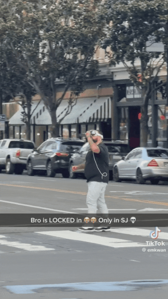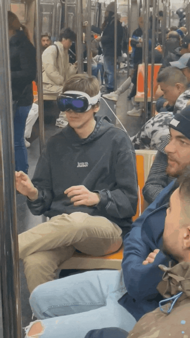 当你拿到一个期待已久的设备,首先要做的一系列事情是什么?开箱、试用,当然,还有拿出去显摆。而Vision Pro作为一款有机会开创下一个“iPhone时代”的新产品,随身佩戴出街肯定是苹果最期待看到使用场景,也是用户最想体验的,于是大街上出现了接下来的一幕幕画面……