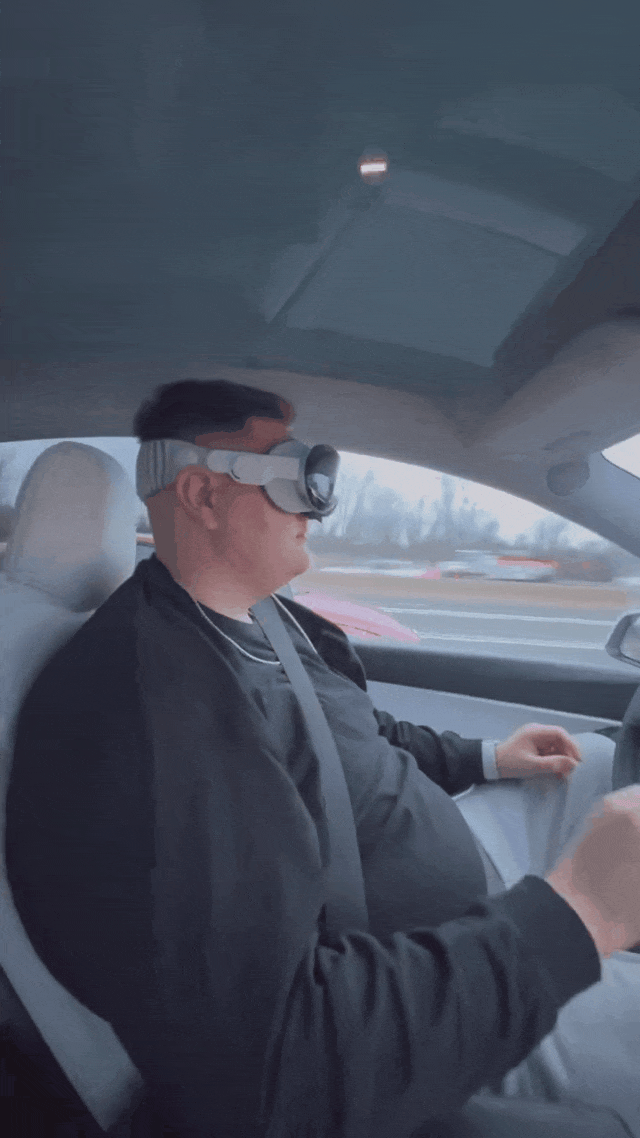 甚至还有戴着它开特斯拉的(噢!空间计算与自动驾驶的神奇组合。)