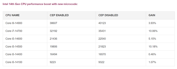 有外媒测试,在新版BIOS后,引入了“停用CEP(电流偏移功率)”这个功能,默认是启用状态,能够提供额外的性能提升。