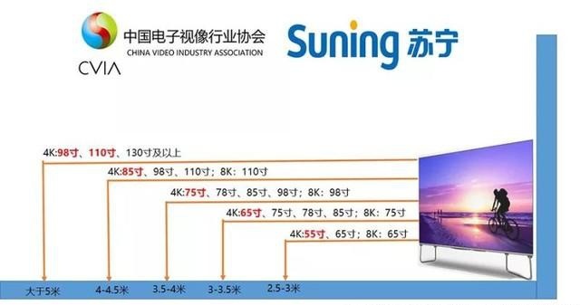 2.5米-3米,55英寸为主;3米-3.5米,65英寸为主;3.5米-4米,75英寸为主;4米-4.5英寸,85英寸为主;5米以上,98英寸/100英寸以上为主。