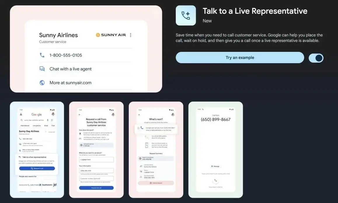 近日,谷歌搜索Google search实验室发布了一项令人兴奋的新功能——“Talk to a Live Representative”,旨在帮助美国用户缩短或完全绕过等待人工客服的时间。这一创新功能为用户提供了更加便捷、高效的服务体验。