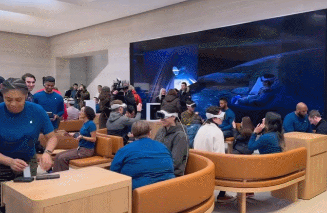 作为初代头显,苹果在宣传上为Vision Pro费了不少功夫,不但连发三条宣传片,而且在线下也为Vision Pro做了多样的展示环节。这样的宣传效果,吸引了不少的用户购买Vision Pro。据苹果零售店的店员透露,一些商店在展示Vision Pro演示后,其用户转化率能够高达10%至15%。