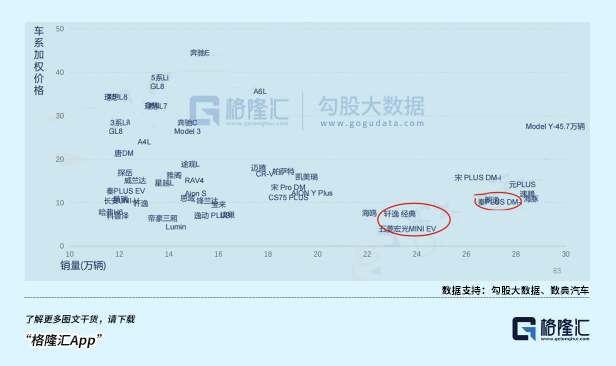 从车型和销量来看,车企们朝着10万元进一步攻城掠池,蚕食合资车企的份额,大致原因可能在于去年10-20万元真的太卷了,不仅比任何一个价位段的车型更加集中,销量断层式的差距也很明显,能达到20万辆以上的车型除了比亚迪的几款车之外寥寥无几。