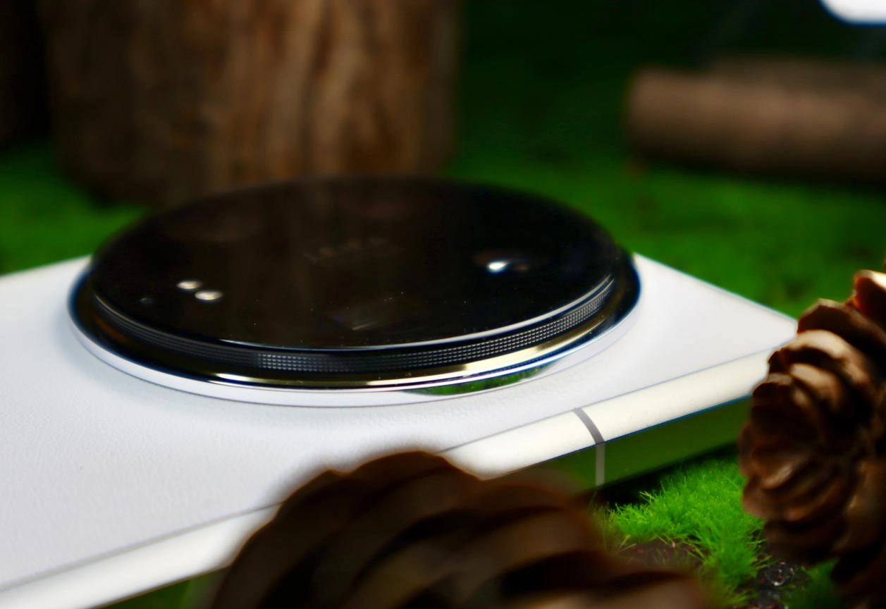 背部的摄像头采用圆形镜头模组设计,搭配精致巴黎饰钉纹点缀,配合若隐若现的金环,高级感十足。在摄像头模组的「LEICA」字样熠熠生辉。这样的设计与边框融合也相当柔和。同时在摄像头的凸起处做了处理,整体很有层次感,和整体的设计相得益彰。看起来非常协调与自然,从而带来更具美感的视觉效果。