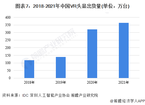 深圳市人工智能产业协会和IDC数据显示,2018-2021年中国VR头显出货量持续增长,2021年中国VR头显出货量达到365万台,同比增长13.5%。