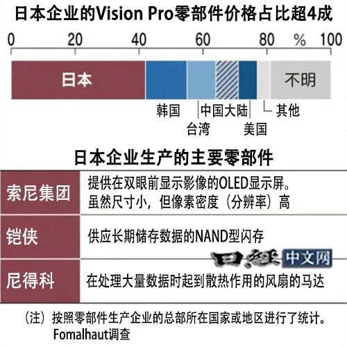 2月28日,日本经济新闻在日本调查公司Fomalhaut Techno Solutions(位于东京都中央区)的协助下,对2月在美国上市的Vision Pro进行了拆解。针对主要零部件确定了制造企业,并推算出了零部件成本。