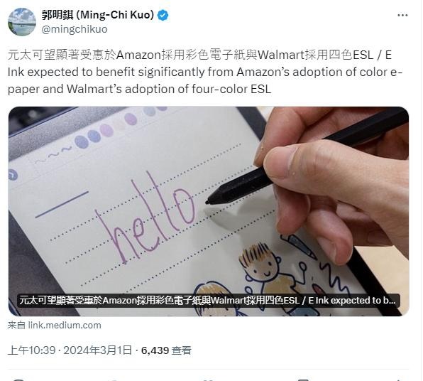 IT之家 3 月 1 日消息,天风国际证券分析师郭明錤最新报告显示,亚马逊预计将于 2025 年导入元太的彩色电子纸 ACeP,预计将推出约 6 英寸和 10 英寸的彩屏 Kindle 阅读器。