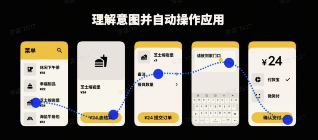 在这个功能设计里,手机还是手机,APP 没有改变,点外卖本身的流程也没有改变,改变的是操作。人手不用自己操作了,大模型「硬控」手机帮你点。