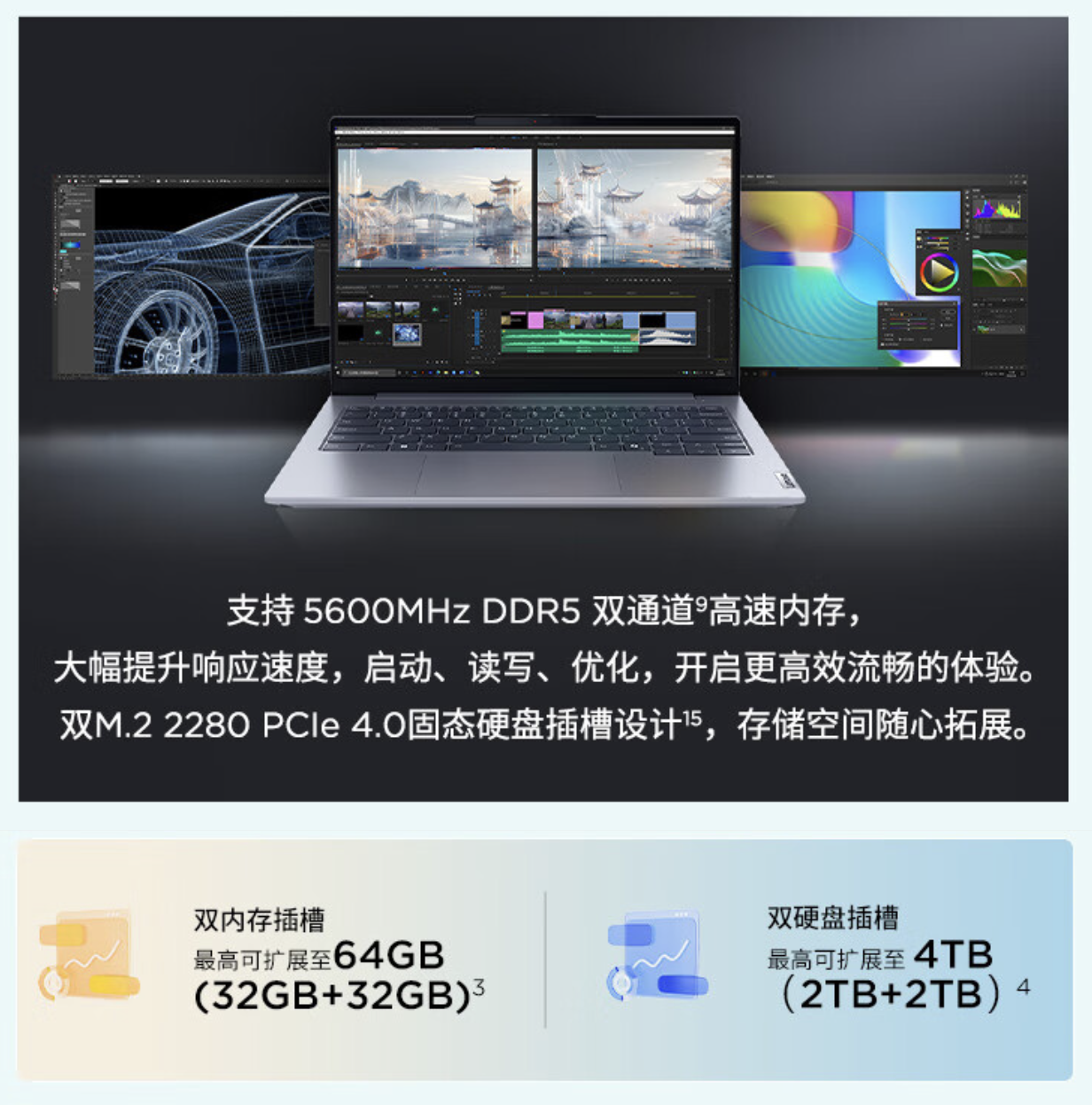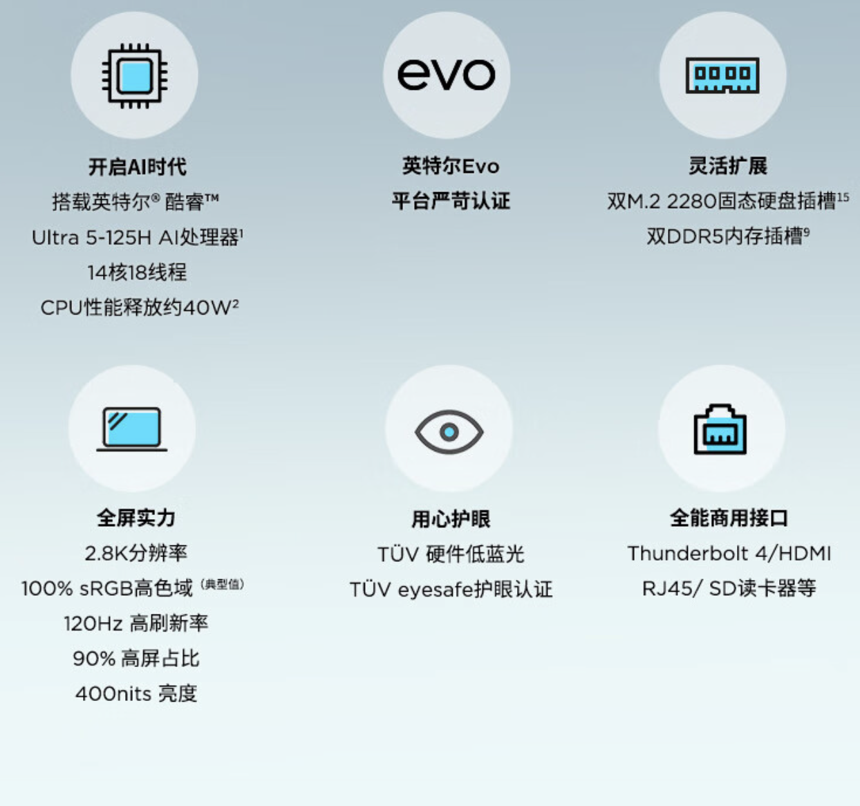 性能方面,这款笔记本搭载 14 核心 18 线程英特尔酷睿 Ultra 5-125H 芯片,搭载 16GB DDR5 5600Mhz RAM 及 1TB M.2 2280 PCIe 4.0 SSD,拥有额外的 M.2 插槽,同时具备英特尔 EVO 认证,采用“单风扇 + 双热管”配置,性能释放 40W。